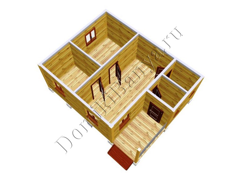 - Межкомнатные перегородки: профилированный строганный брус 90х140 мм., врезаются в стены.