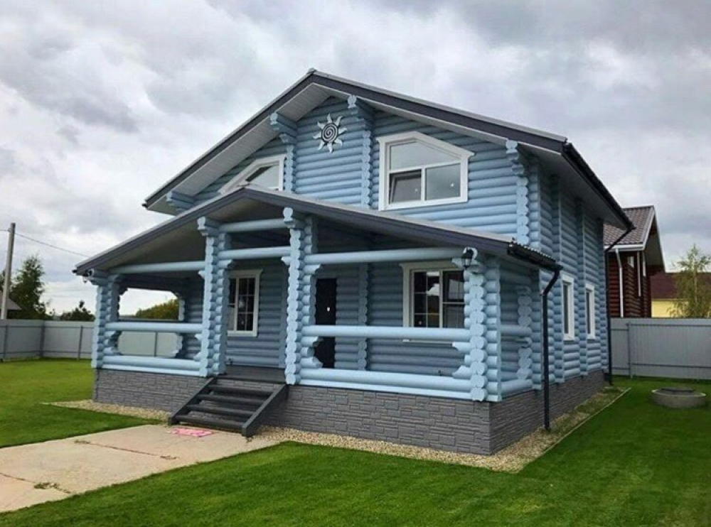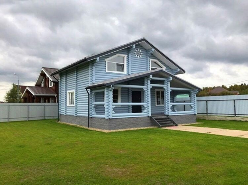 Проект двухэтажного дома Коттедж из оцилиндрованного бревна. Проект Ветрово.