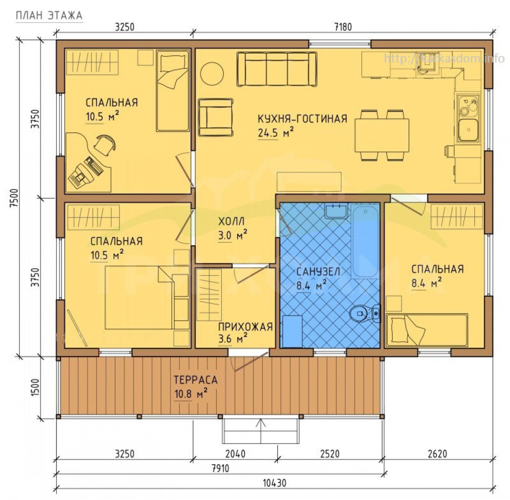 - Общая площадь: 70 м2