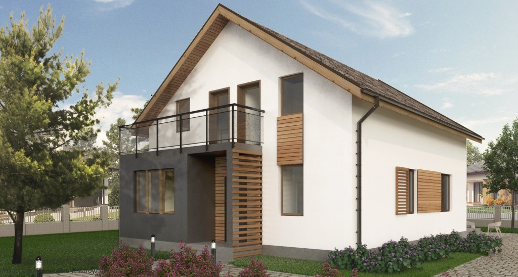 Здание выглядит респектабельно, но без показной роскоши. В этих 166 м² легко организовать рабочую и зону отдыха. Битумная черепица придаёт дому выразительность и надёжность. Наличие 3 спальни удовлетворит запросы семьи с детьми. Каркаса делает дом надёжным при любой погоде.Характеристики