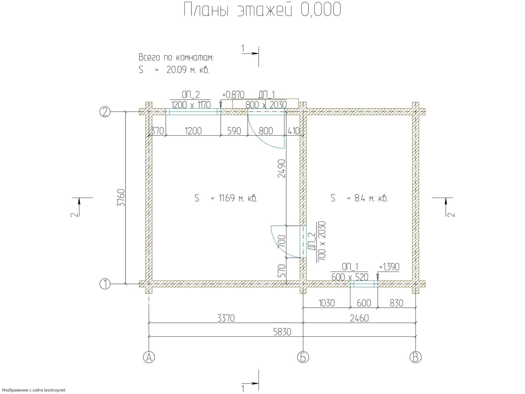 Проект одноэтажного дома Баня из бруса 3,8 x 5,9 м | проект Б-17