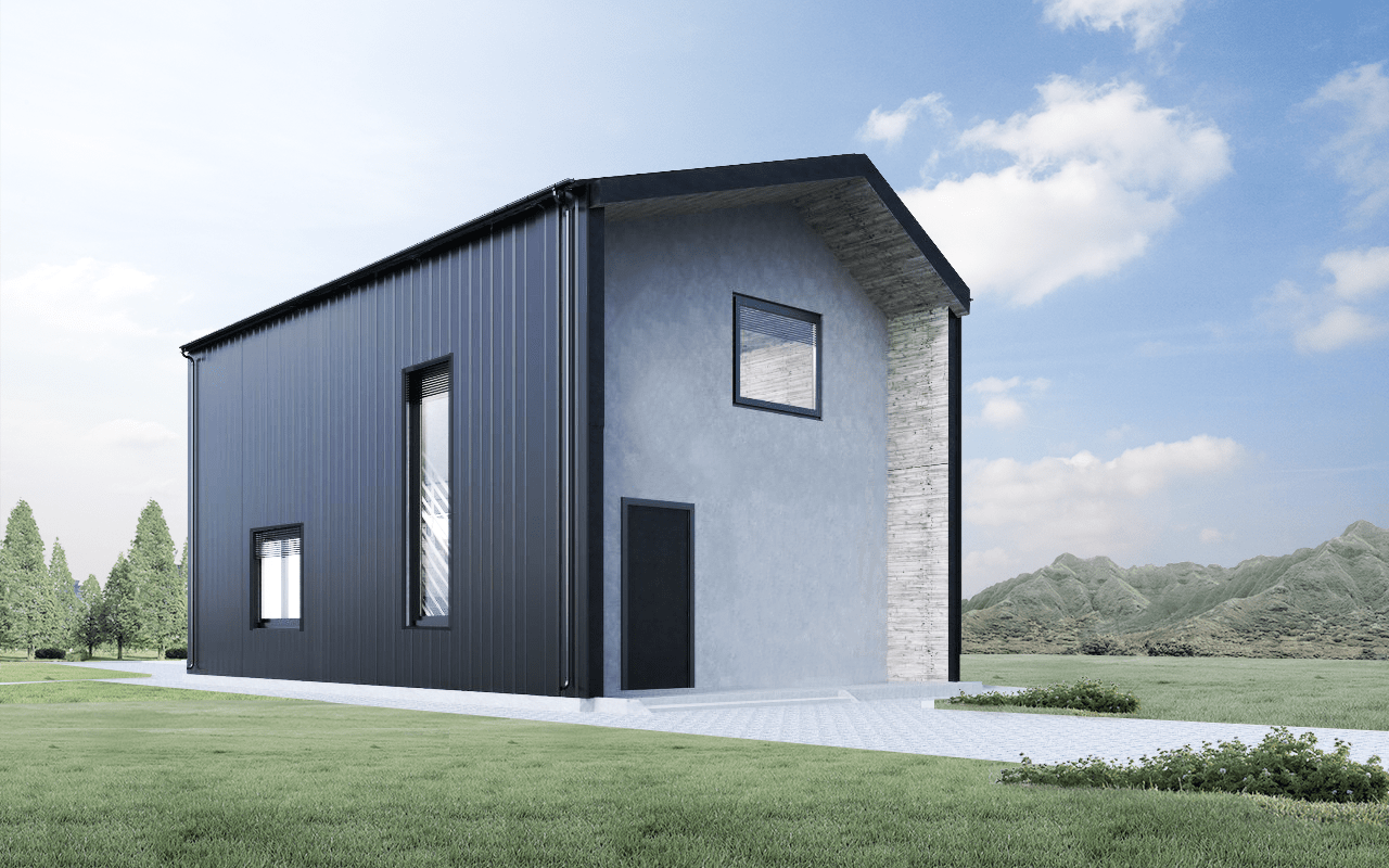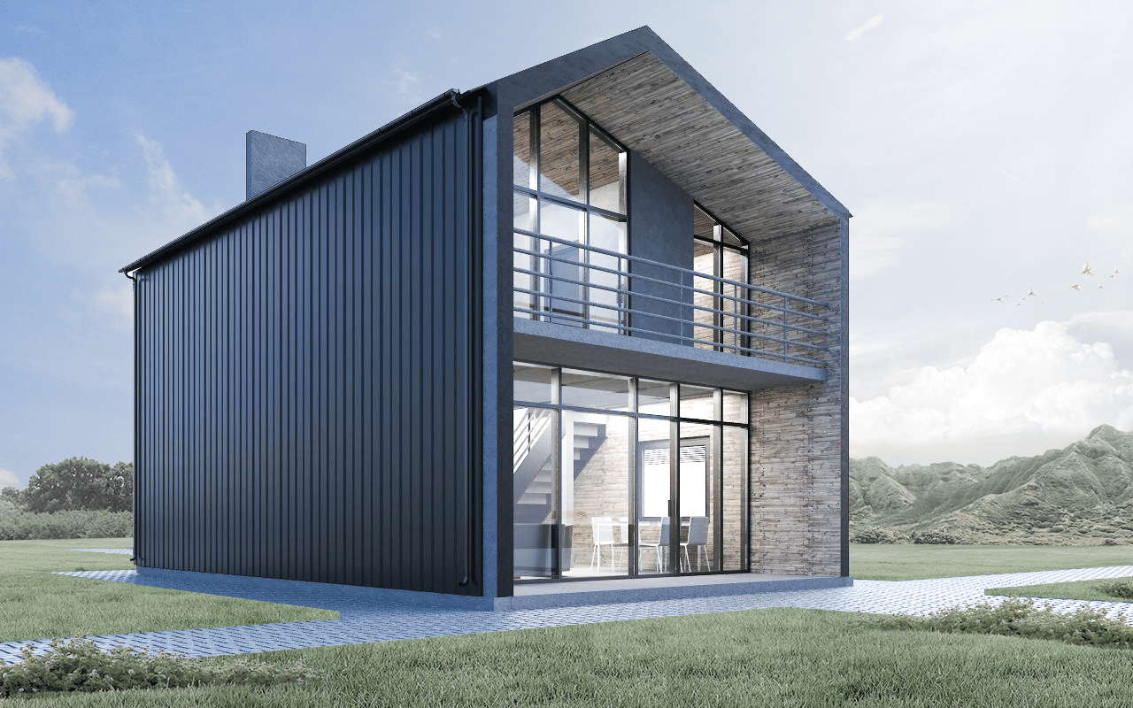 Современный двухэтажный дом площадью 90 м² из бруса с кровлей из профнастила. Проект в стиле модерн включает 2 спальни и лаконичные формы. Идеален для любителей минимализма и функционального пространства. Дом гармонично впишется в любой ландшафт.Характеристики