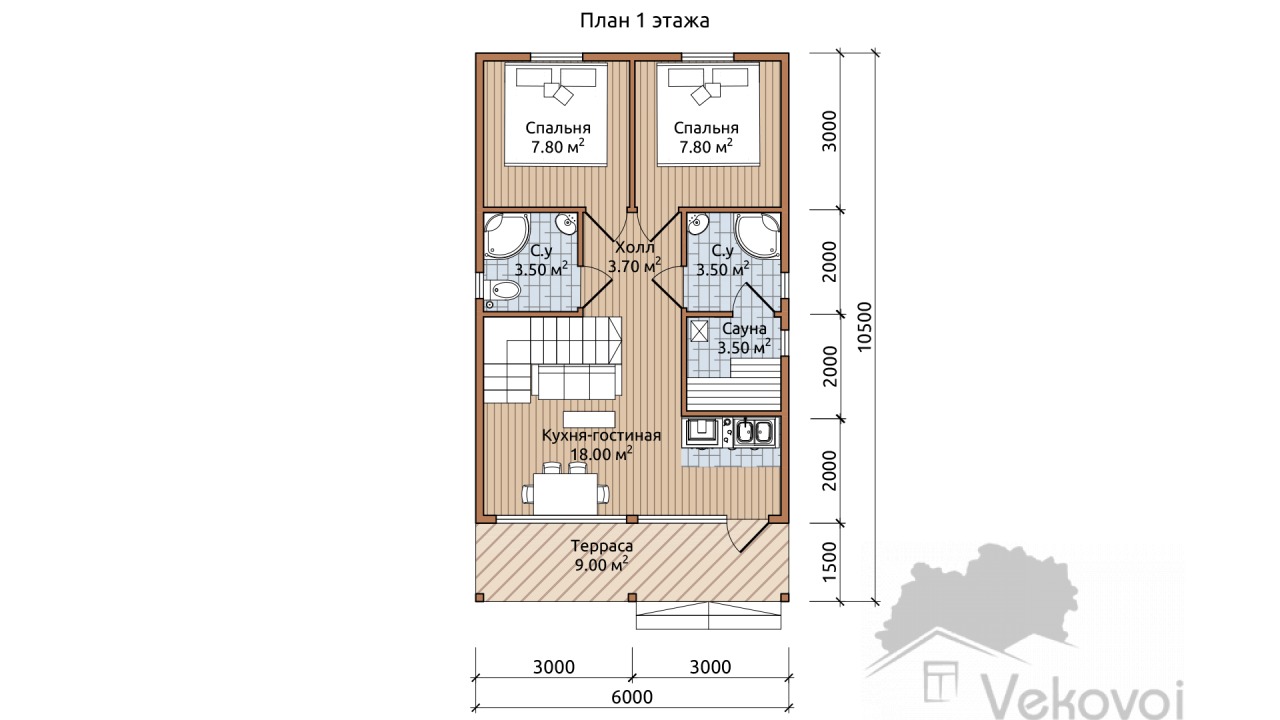 Проект двухэтажного дома барнхаус 10.5 на 6