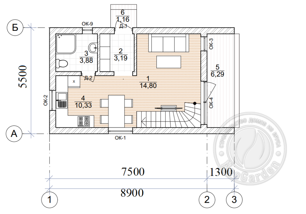 Дом из бревна площадью 65 м² предлагает уютную атмосферу и натуральные материалы. Традиционная архитектура сочетается с современными удобствами. Проект идеально подходит для тех, кто ценит аутентичность. Это отличный вариант для загородного отдыха.Характеристики