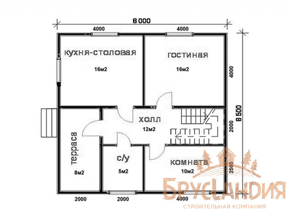 Проект двухэтажного дома БД-33 Деревянный дом 8х8 м