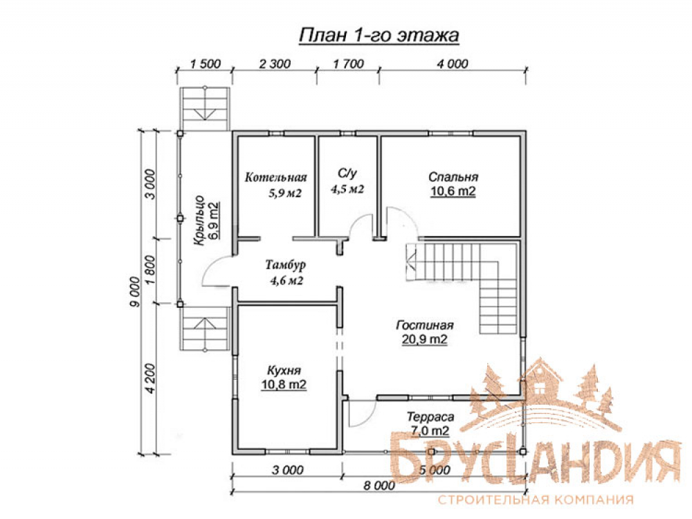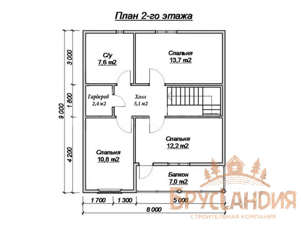 Проект двухэтажного дома БД-36 Дом из бруса 9х8 м
