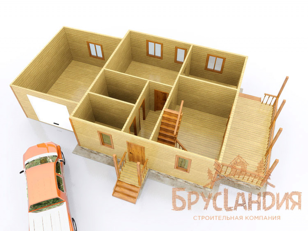 Проект двухэтажного дома БД-43 Коттедж из бруса 8х8 м
