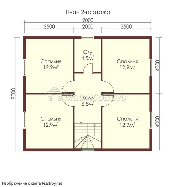 Проект двухэтажного дома БД-5 (9x8) двухэтажный