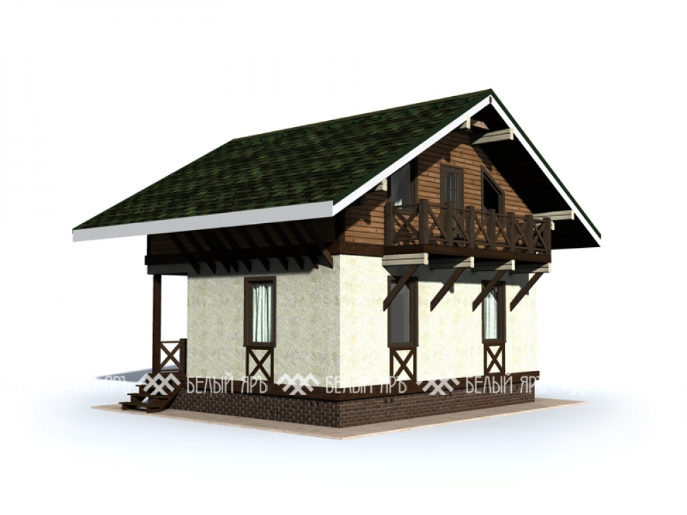 Проект двухэтажного дома Дом 6х8 м с мансардной крышей и кухней-гостиной