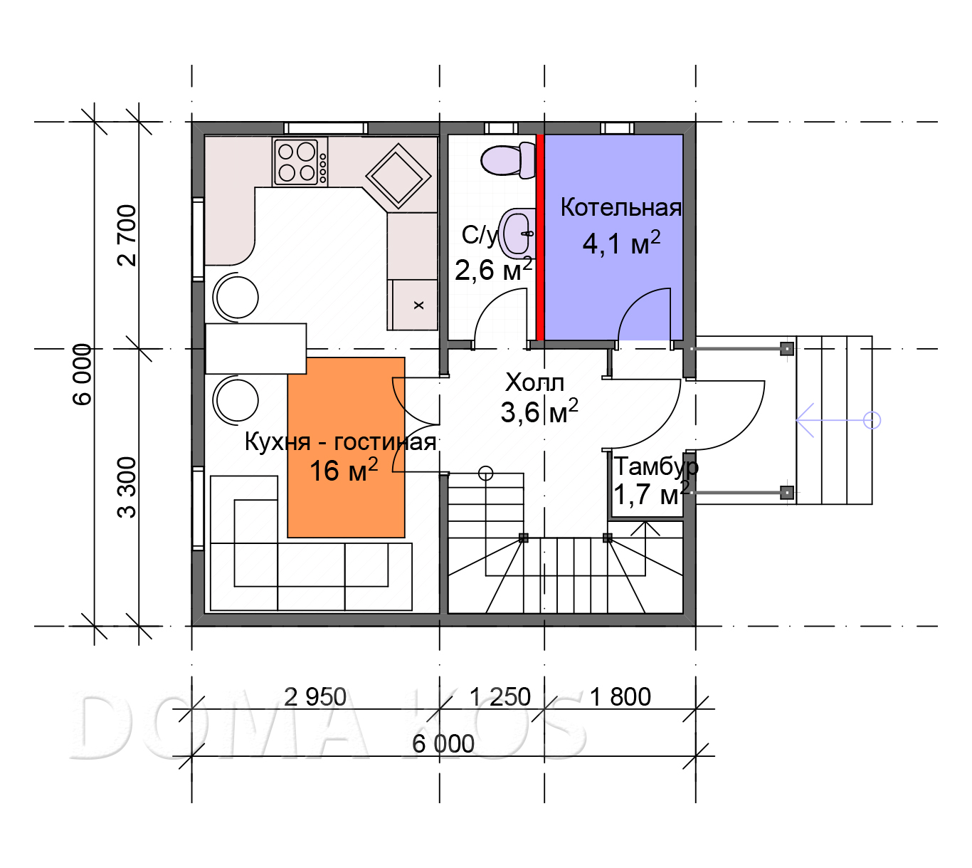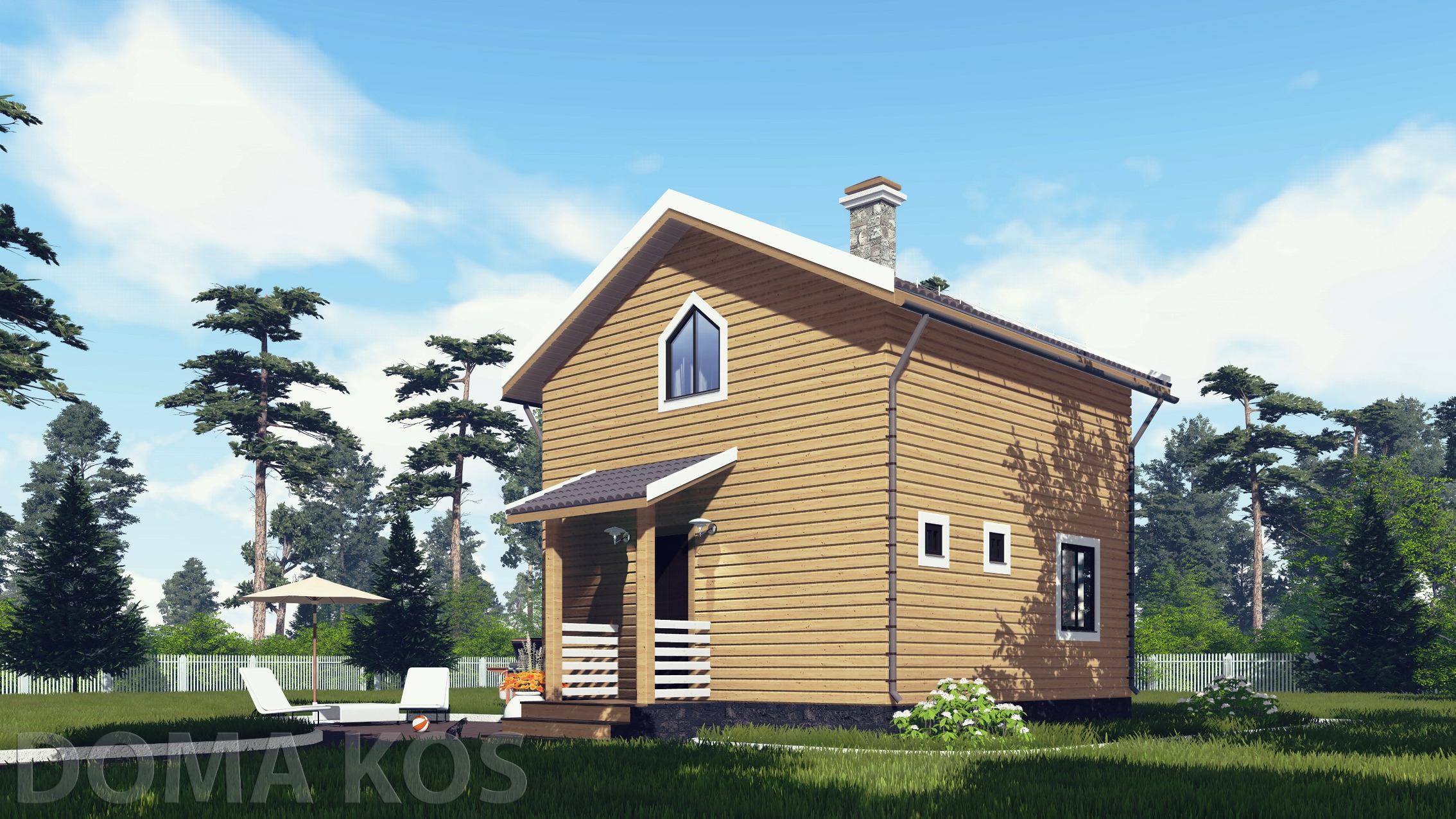 Проект учитывает все современные требования к жилью.Дом с 64 м² даёт ощущение гармонии. Выбор бруса обусловлен его теплоизоляционными свойствами. Битумная черепица придаёт дому выразительность и надёжность. Дом спроектирован в духе дома в стиле кантри.Характеристики