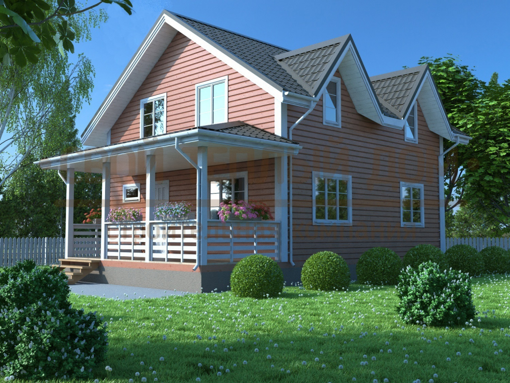 Проект одноэтажного дома Брусовой полутораэтажный сруб с террасой