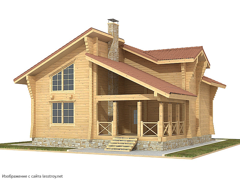 Проект двухэтажного дома Дом из клееного бруса с террасой и балконом. Проект Светово.