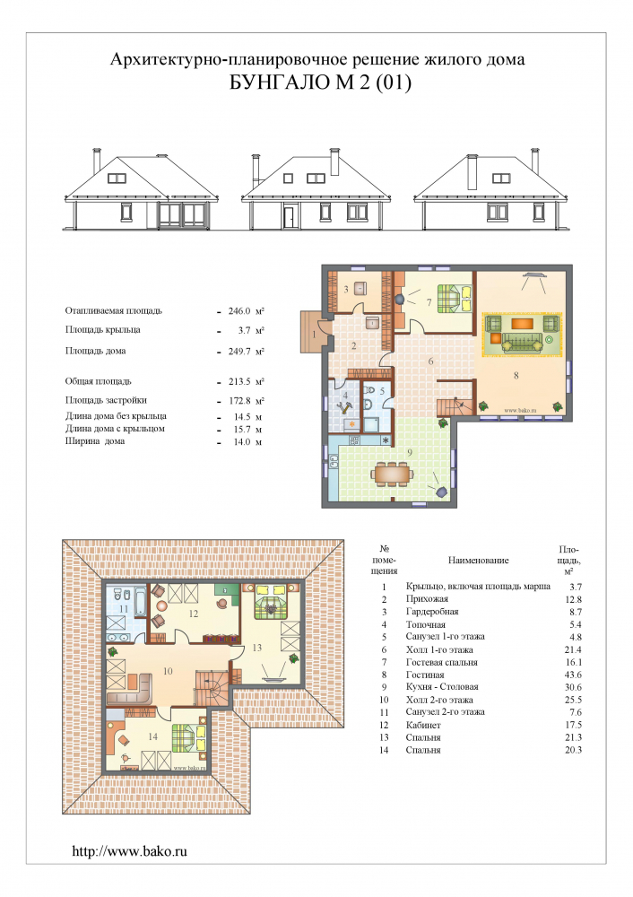 Проект двухэтажного дома Бунгало 2 M