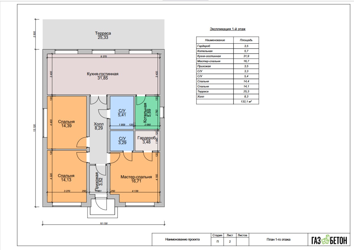 - Общая площадь: 131 м2