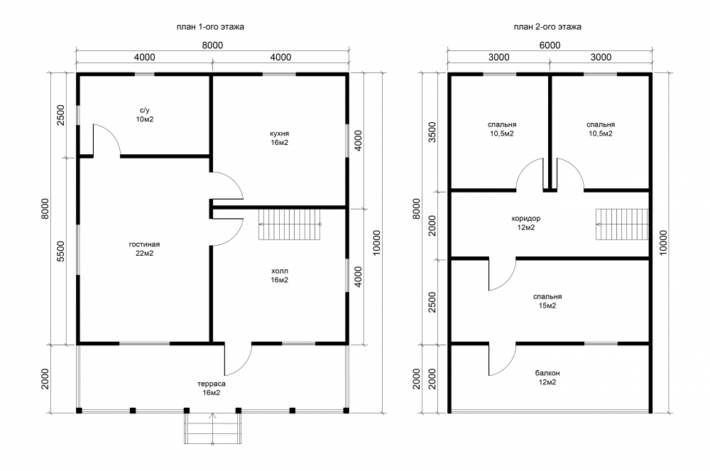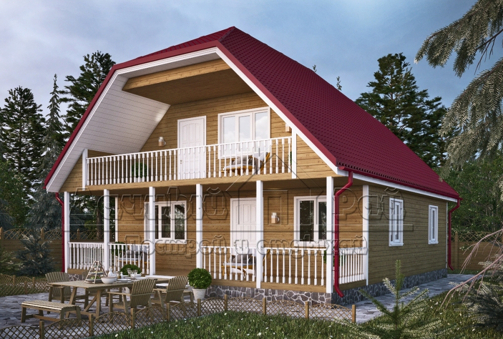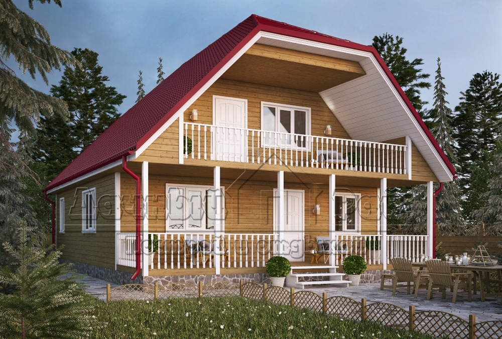 Проект двухэтажного дома Д-22 дом из бруса с мансардным этажом общим размером 8,0х10,0м.
