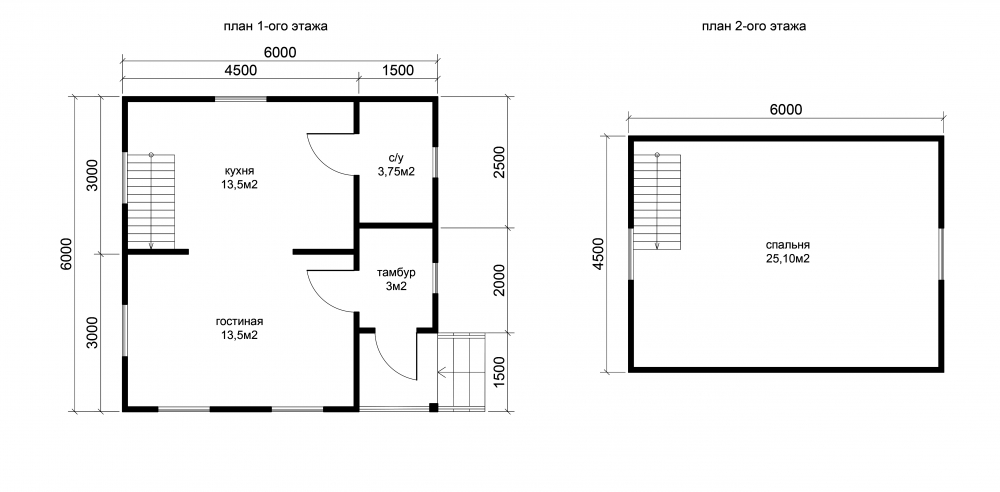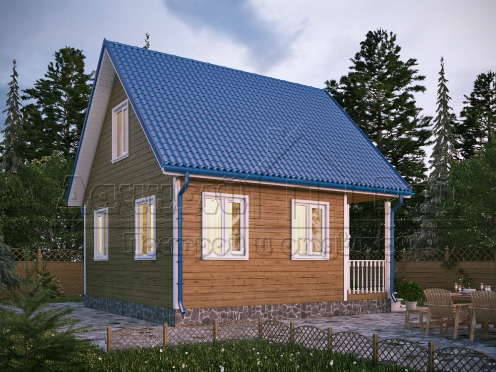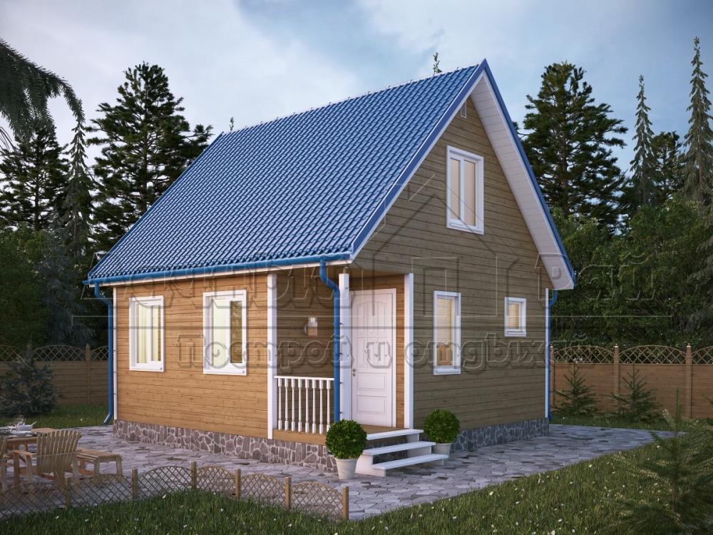 Проект двухэтажного дома Д-24 дом из бруса с мансардным этажом размером 6,0х6,0м.
