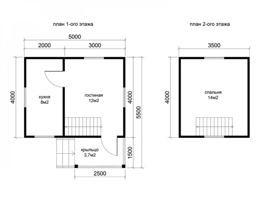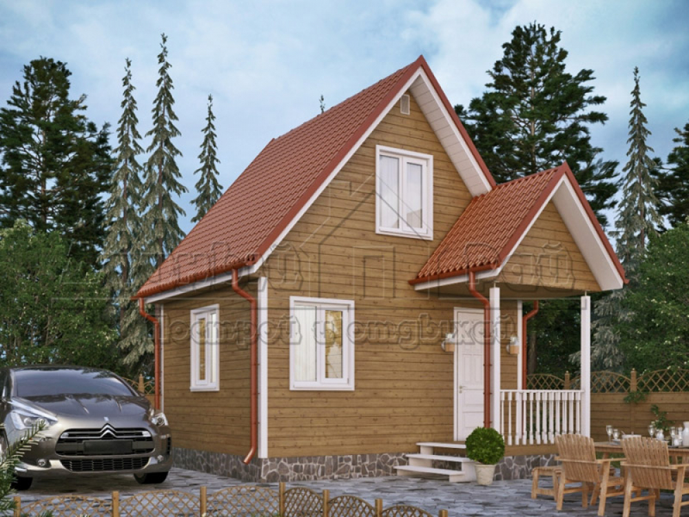Проект двухэтажного дома Д-3 дом из бруса 5,0х4,0м с крыльцом 2,5х1,5м