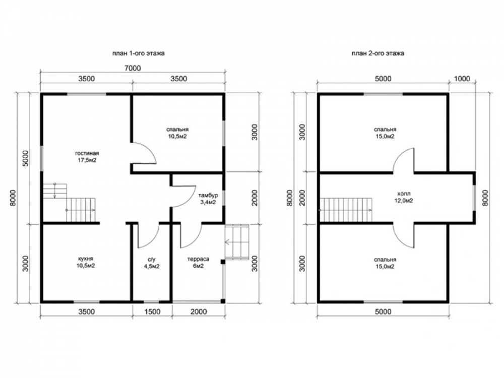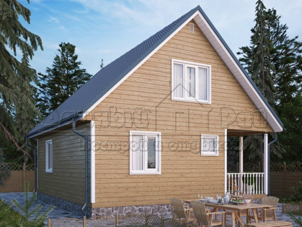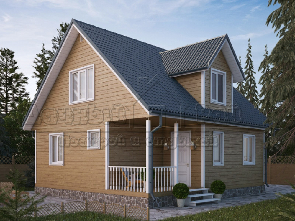 Проект двухэтажного дома Д-33 дом из бруса 7,0х8,0м с террасой и кукушкой
