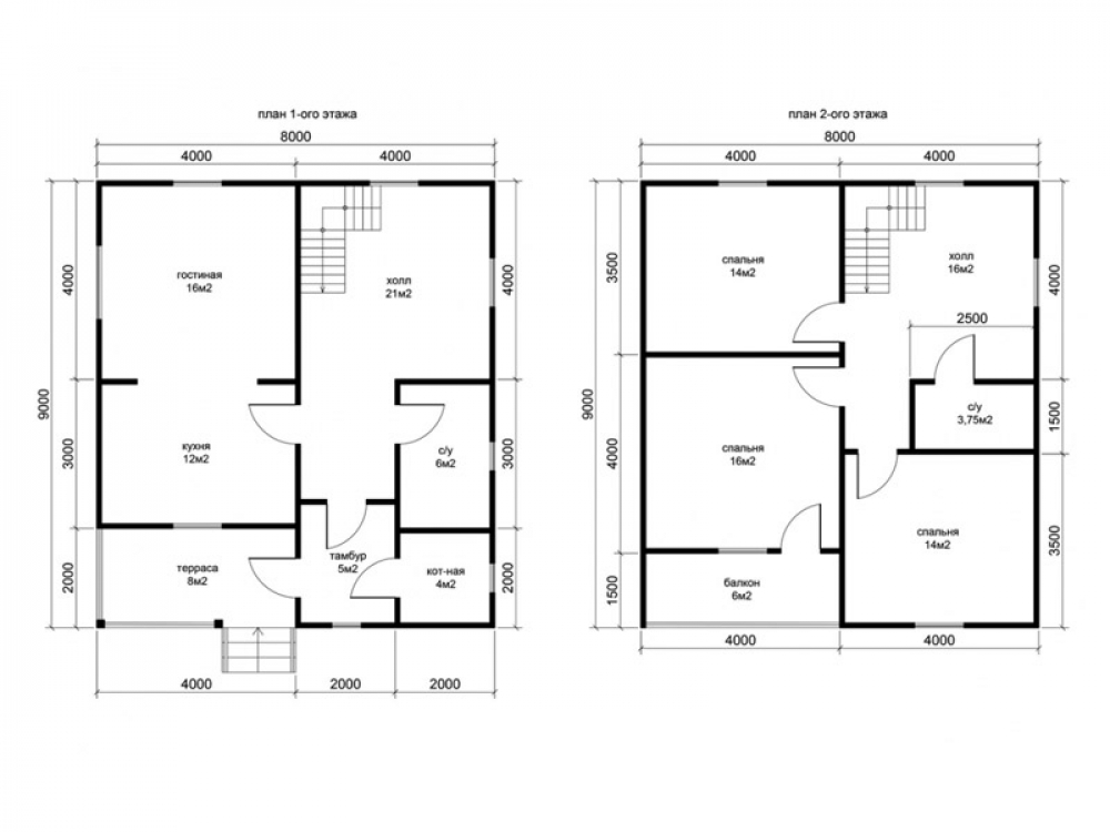 Проект двухэтажного дома Д-39 дом из бруса 8,0х9,0м