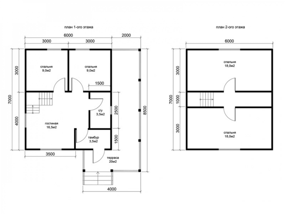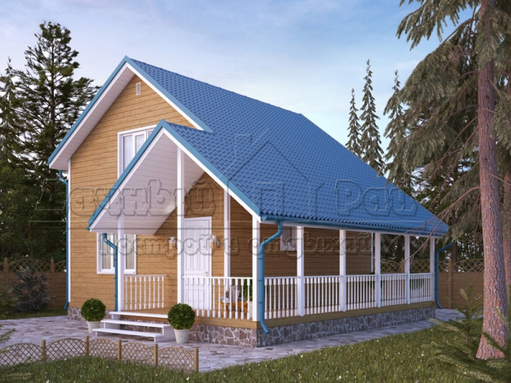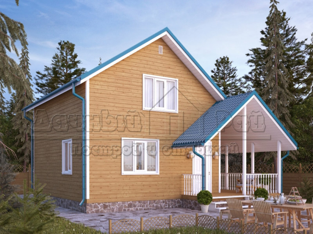 Проект двухэтажного дома Д-48 дом из бруса 8,0х7,0м с террасой