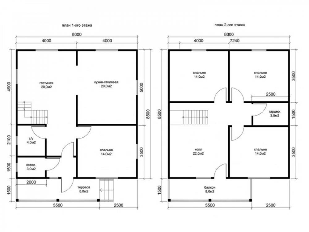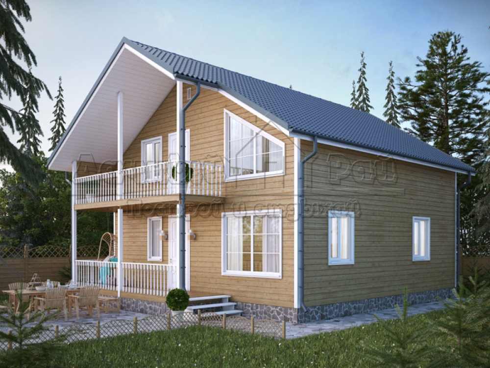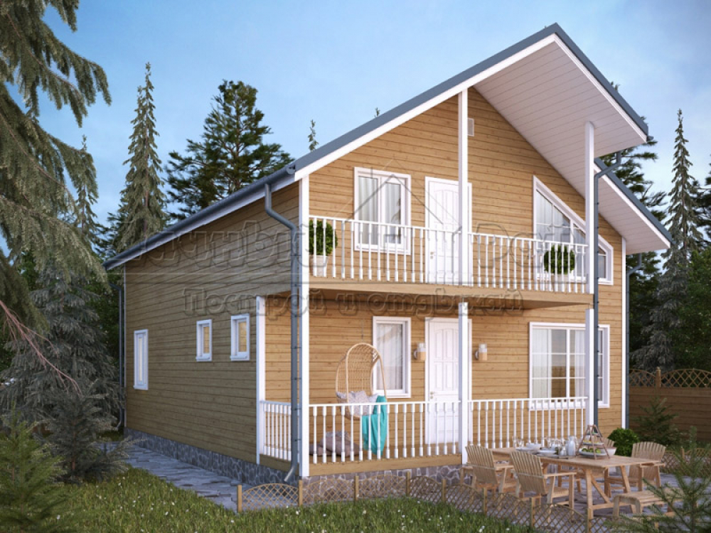Проект двухэтажного дома Д-51 дом из бруса 8,0х10,0м с террасой и балконом