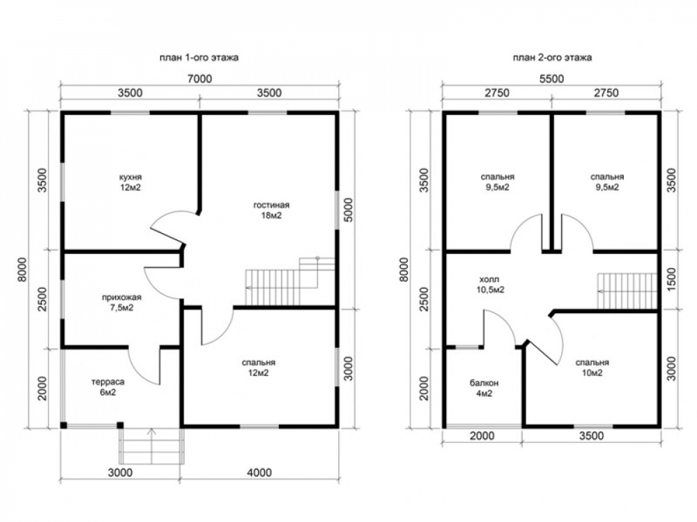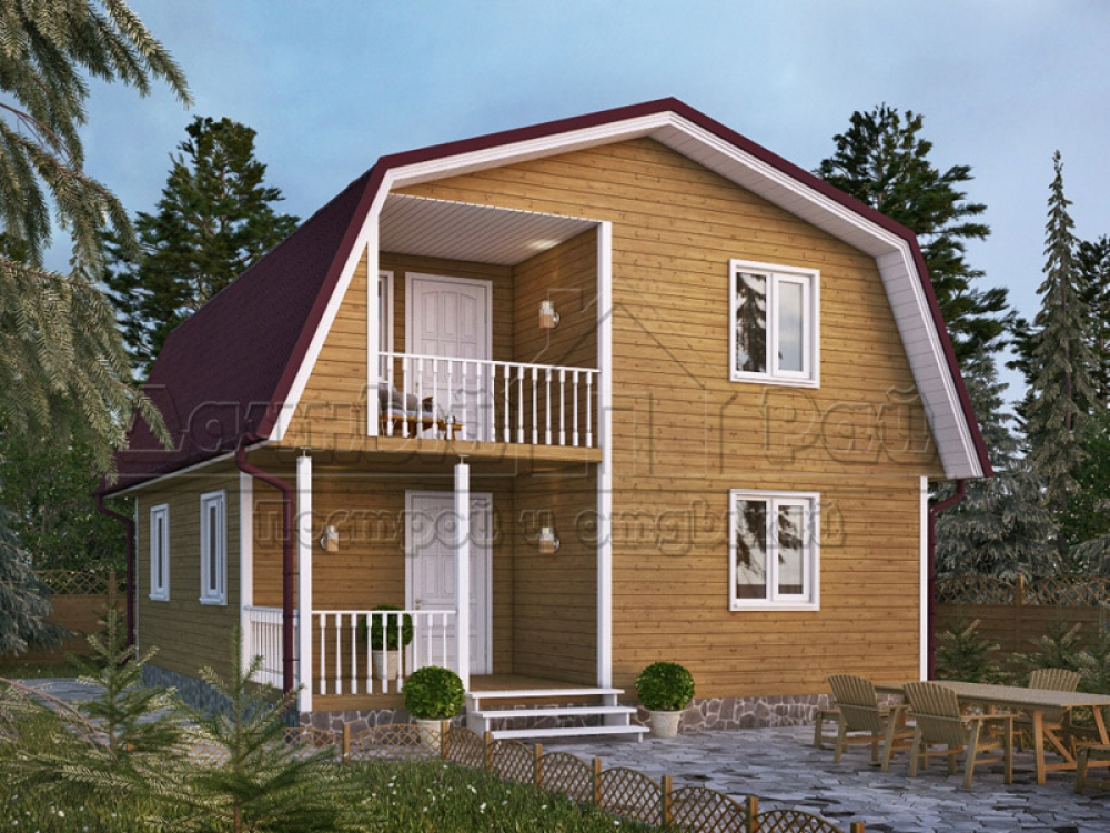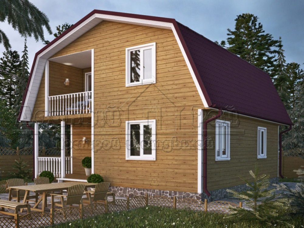 Проект двухэтажного дома Д-55 дом из бруса 7,0х8,0м с террасой и балконом