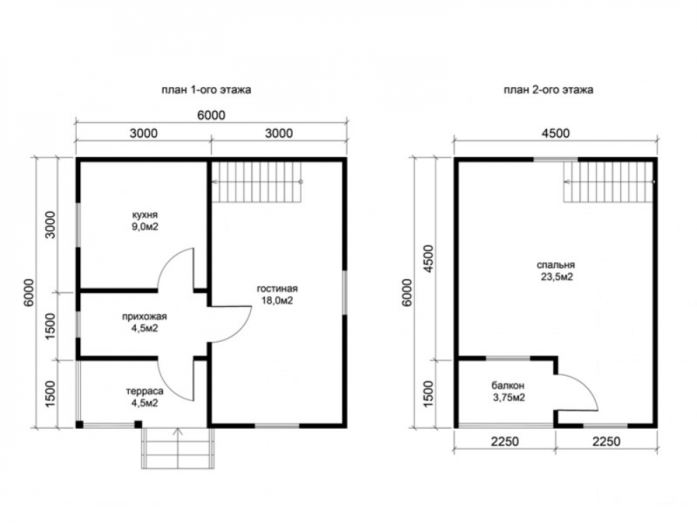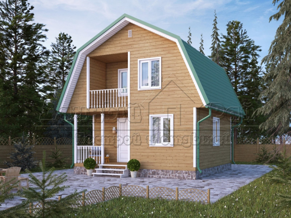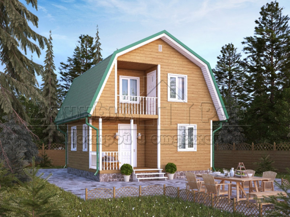 Проект двухэтажного дома Д-61 дом из бруса 6,0х6,0м с террасой и балконом