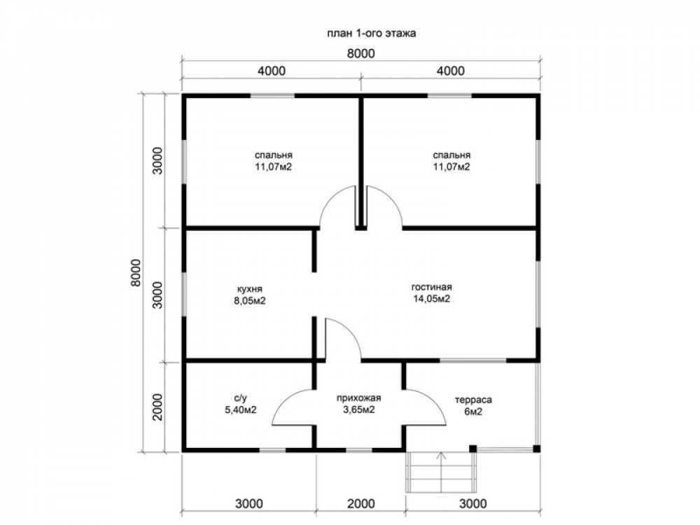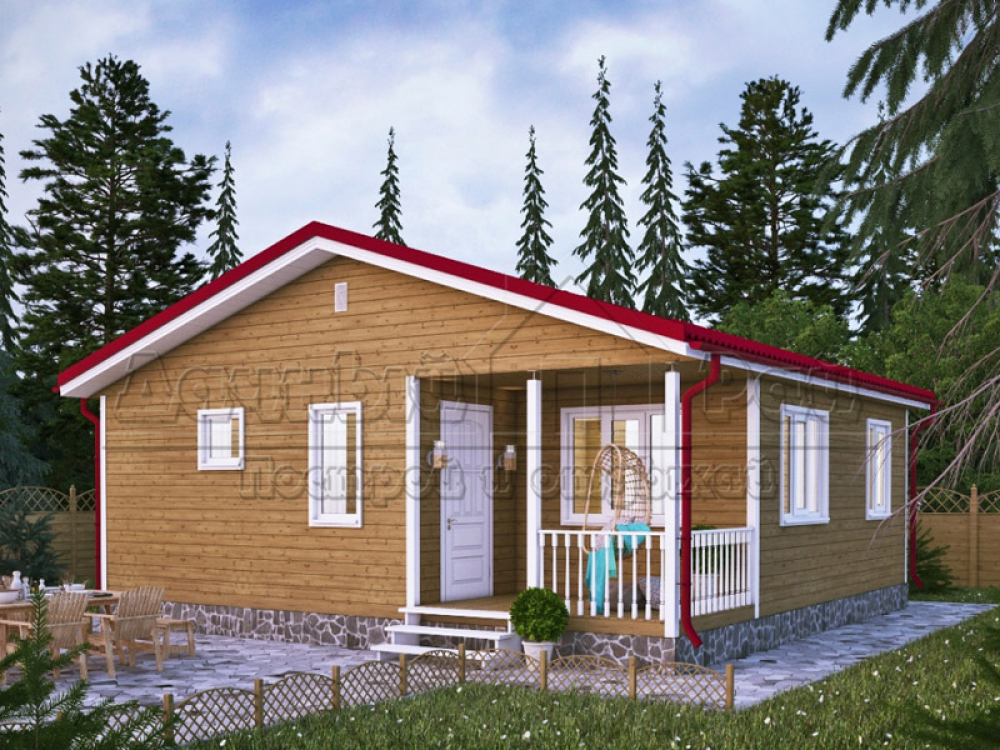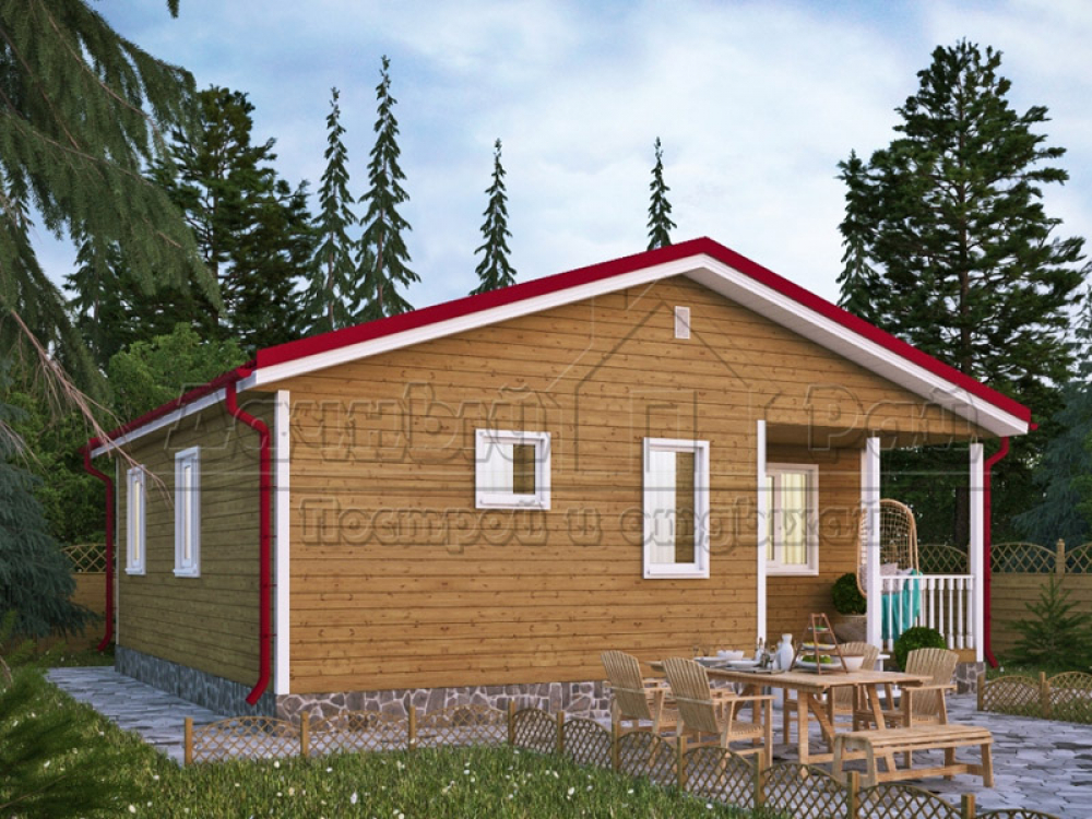 Проект одноэтажного дома Д-63 дом из бруса 8,0х8,0м с террасой