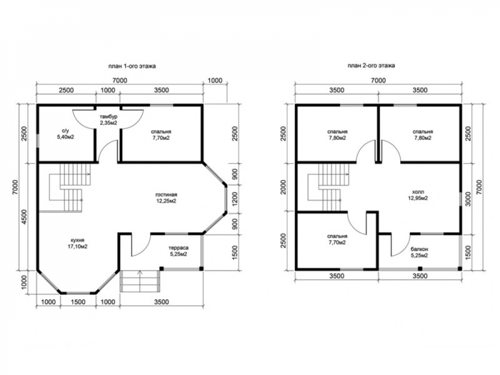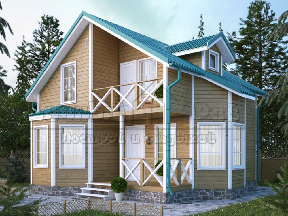 Проект двухэтажного дома Д-76 дом из бруса 7,0х7,0м