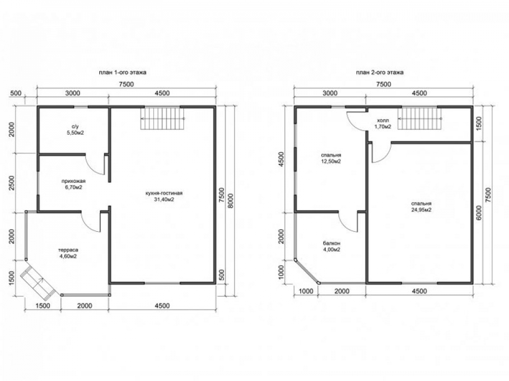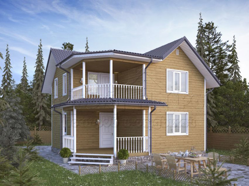 Проект двухэтажного дома Д-83 дом из бруса 7,5х8,0м с террасой и балконом