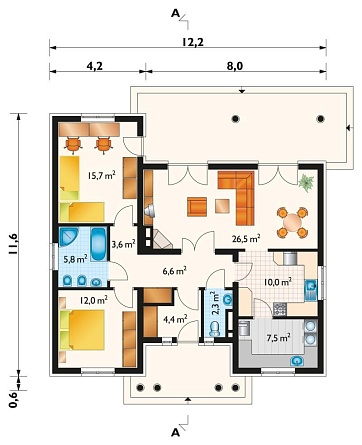 Проект одноэтажного дома ДА-95