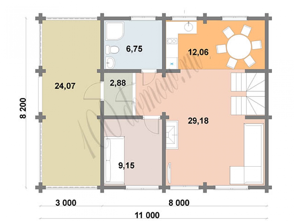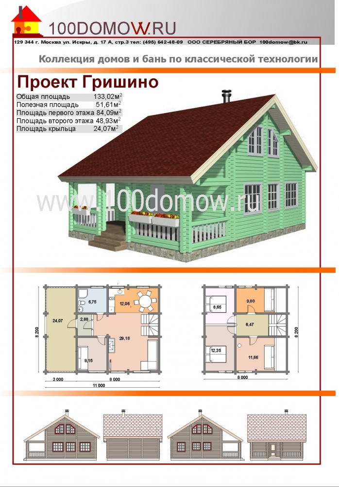 Проект двухэтажного дома Дачный дом из клееного бруса. Проект Гришино