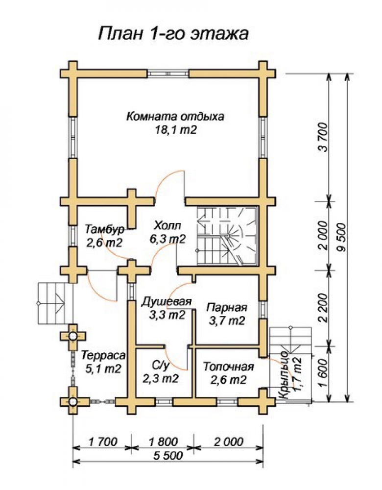 Проект двухэтажного дома Дачный дом с баней 5.5 х 9.5