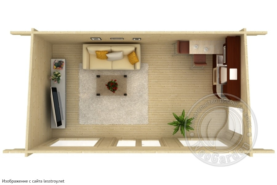 Компактный брусовый дом площадью 12 м² — отличное решение для временного проживания или гостевого варианта. Несмотря на небольшие размеры, здесь есть все необходимое для комфорта. Дерево придает интерьеру тепло и уют. Проект подойдет для дачи или миниатюрного загородного жилья.Характеристики