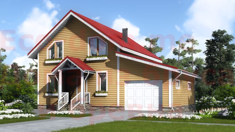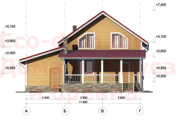 Проект двухэтажного дома Дом из клееного бруса с террасой и балконом. Проект Светово.