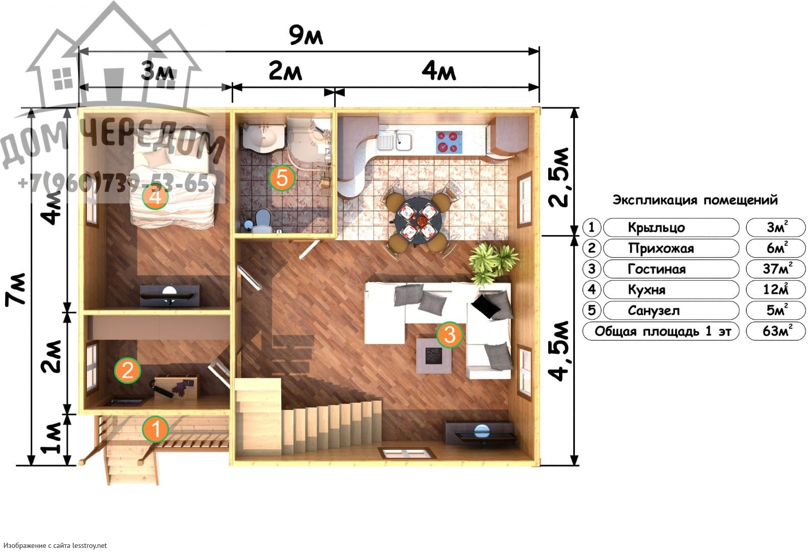 Дом, который согревает даже в самые холодные дни.Комфортные 157 м² — и ни больше, ни меньше. Стены из бруса хорошо держат тепло и защищают от шума. Крыша из рубероид подчёркивает современный облик дома. Двухэтажная эргономичная планировка разделяет приватные и общественные зоны.Характеристики