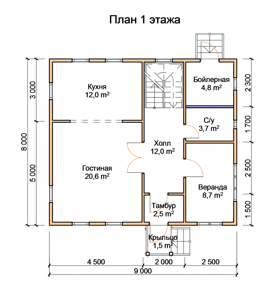 Проект одноэтажного дома Одноэтажного дом из бруса 9.5х12 ДБ-7