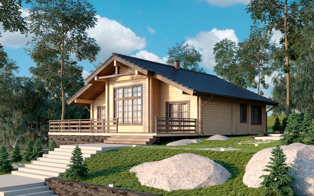 Проект двухэтажного дома Дом из клееного бруса с террасой и балконом. Проект Светово.