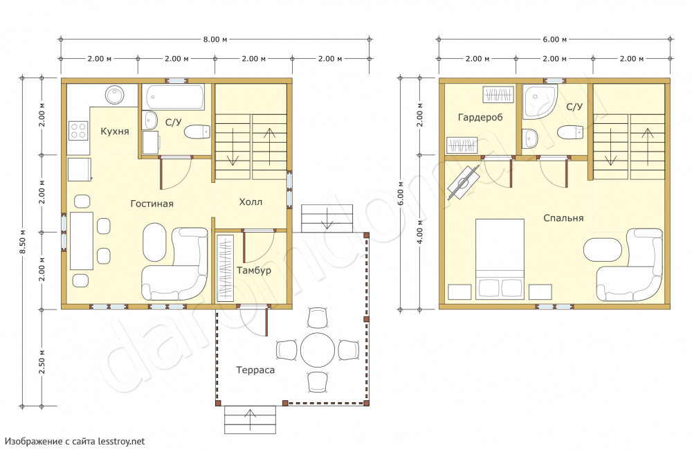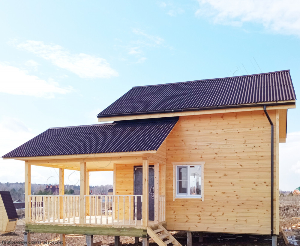 Проект двухэтажного дома Дом 6х6 м в полтора этажа с террасой