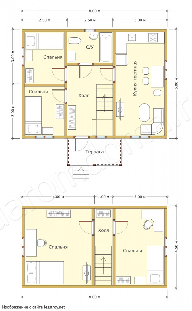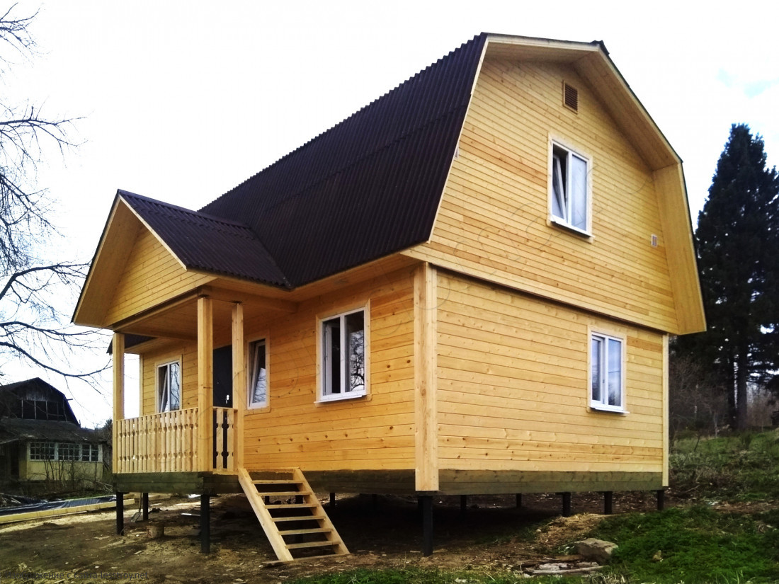 Проект двухэтажного дома Дом 6х8 м с мансардной крышей и кухней-гостиной