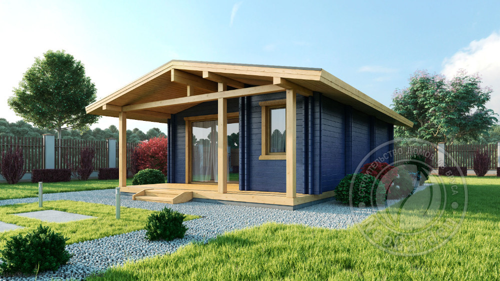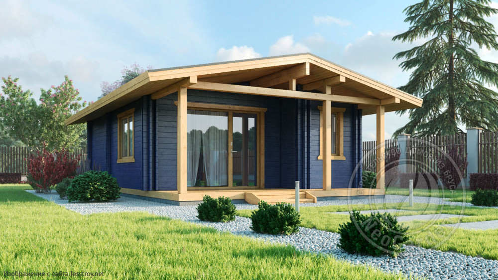 Проект одноэтажного дома Дом 6х8м из двойного бруса Альбатрос