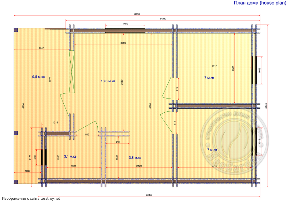 Проект одноэтажного дома Дом из бруса 8 x 14 м | проект Д-31