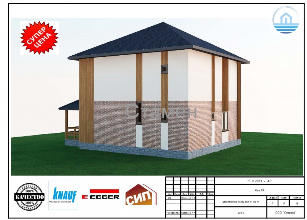 Проект двухэтажного дома Дом 9 на 9