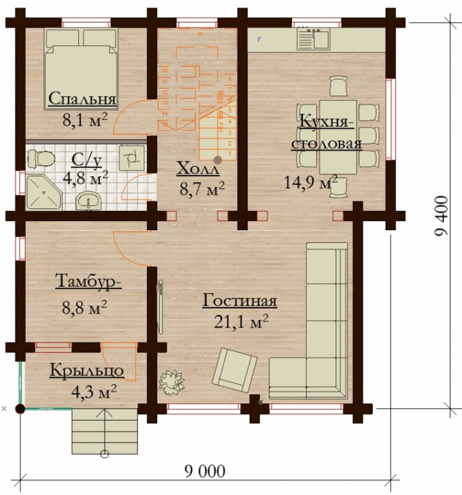 Дом, в котором сердце замирает от счастья при виде дивана.Комфортное пространство в 119 м² подойдёт для любой семьи. Дом спроектирован в духе дома в классическом стиле. Конструкция из бревна обеспечивает прочность и долговечность. Материал кровли — рубероид, что добавляет зданию индивидуальность.Характеристики