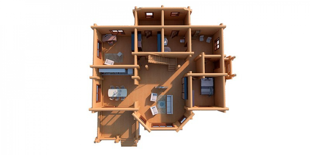 Дом, в котором домашняя библиотека оборудована специальным освещением. Уют начинается с 301 м². Материал кровли — рубероид, что добавляет зданию индивидуальность. Двухэтажная просторная планировка организует пространство максимально эффективно. Выбор бревна обусловлен его теплоизоляционными свойствами.Характеристики