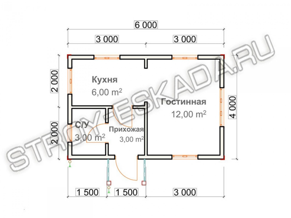 - Общая площадь: 24 м2