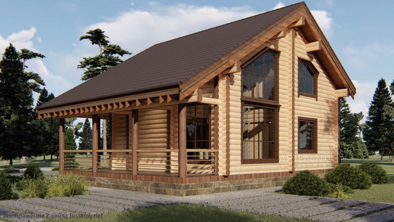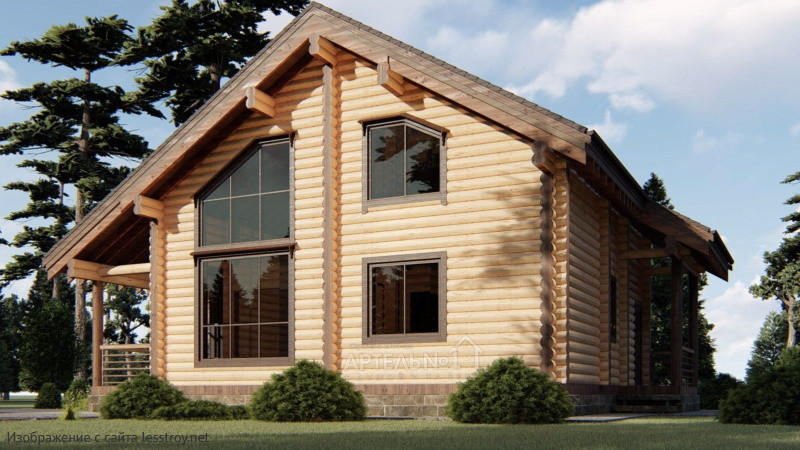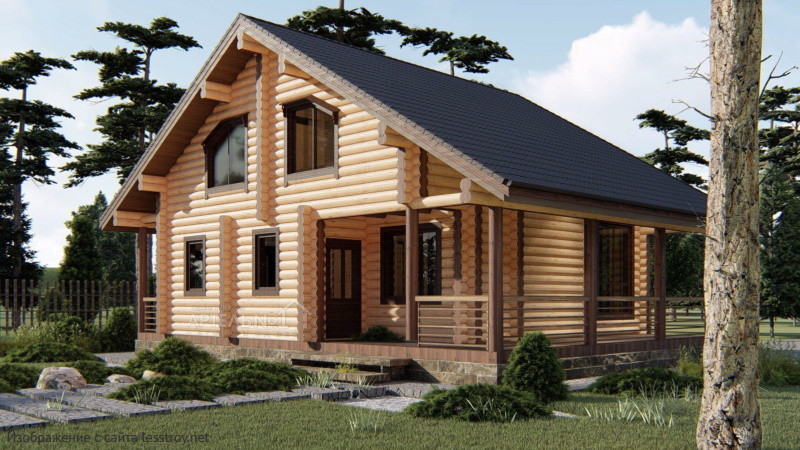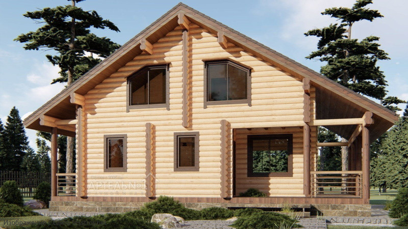 Проект двухэтажного дома Коттедж из оцилиндрованного бревна. Проект Ветрово.