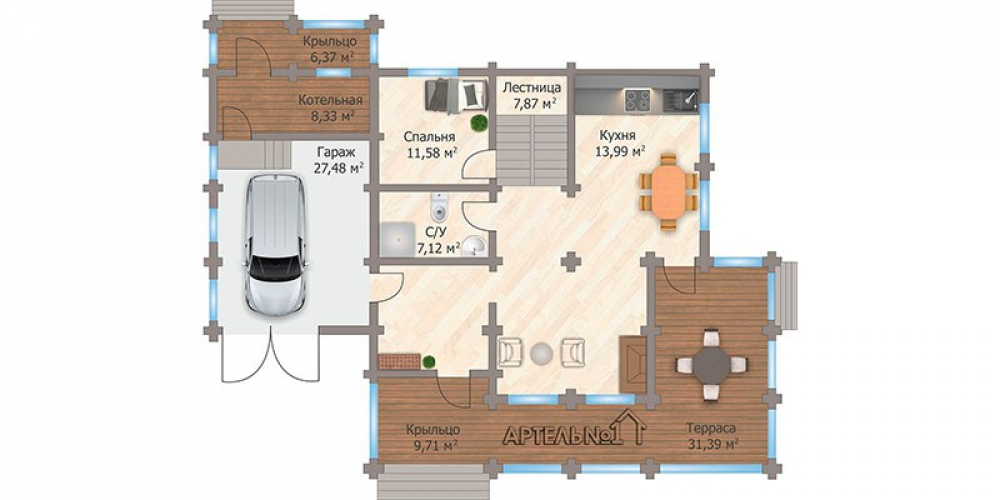 Проект создает ощущение уюта и защищенности. 113 м² — практичный подход к современной архитектуре. Стены из бруса хорошо держат тепло и защищают от шума. Это двухэтажная структура, которая обеспечивает комфортную навигацию внутри дома. В доме предусмотрено 3 спальни, что важно для комфорта.Характеристики