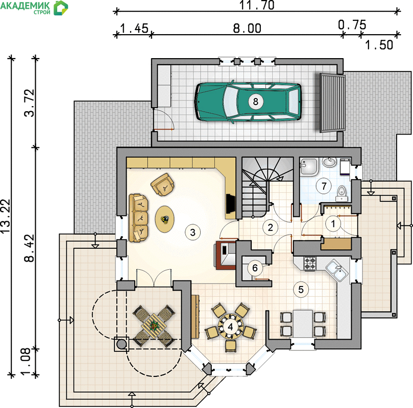 - Площадь кровли: 161,70 м2