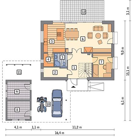 Трёхэтажный дом площадью 142 м² включает четыре комнаты и два санузла, что удобно для семьи из 3-5 человек. Гараж на одну машину предусмотрен для удобства владельцев авто. Планировка позволяет удобно зонировать пространство для отдыха, работы и творчества. Дом выполнен из газобетона и металлочерепицы для надёжности и уюта.Гарантии: 16 лет гарантии